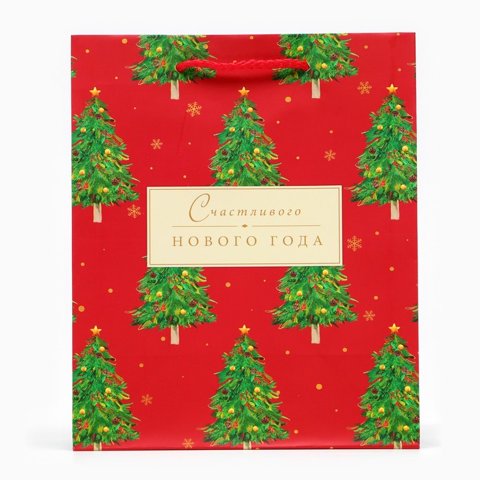 Пакет подарочный «Счастливого Нового года», на бежевом, 18×22.3×10 см — Характеристики
