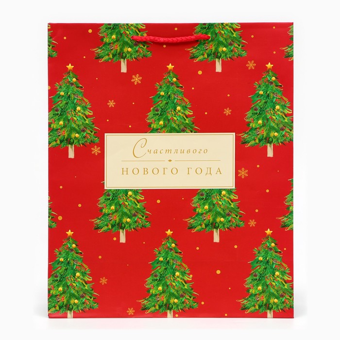 Пакет подарочный «Счастливого Нового года», на бежевом, 26×32×12 см — Характеристики