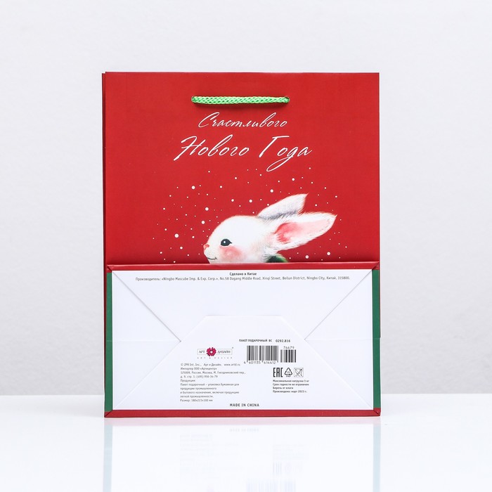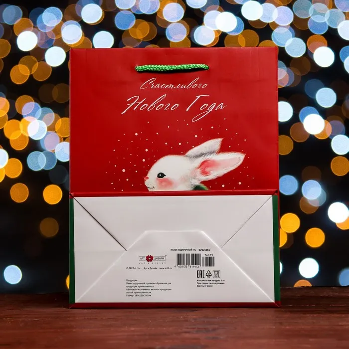 Пакет подарочный "Счастливого Нового года.Зайка", 18 х 22,3 х 10 см. — Характеристики