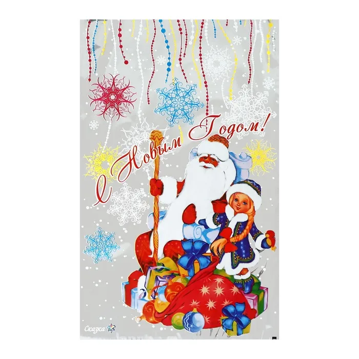 Яркая глянцевая поверхность с переливающимся эффектом добавляет праздничного настроения, а оригинальные новогодние изображения – снежинки, ёлочки, игрушки – делают упаковку стильной и атмосферной.