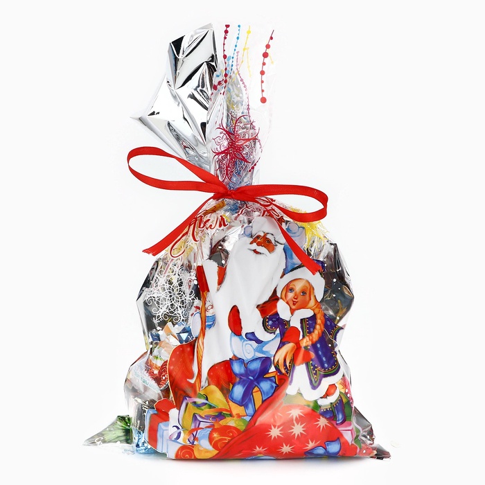 Подарочный новогодний пакет металлизированный с праздничным рисунком – идеальное решение для оформления сладких подарков!