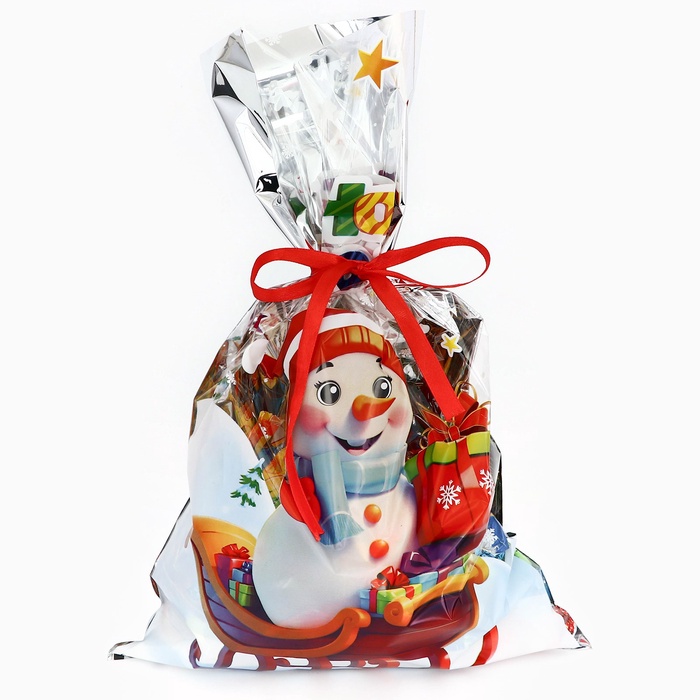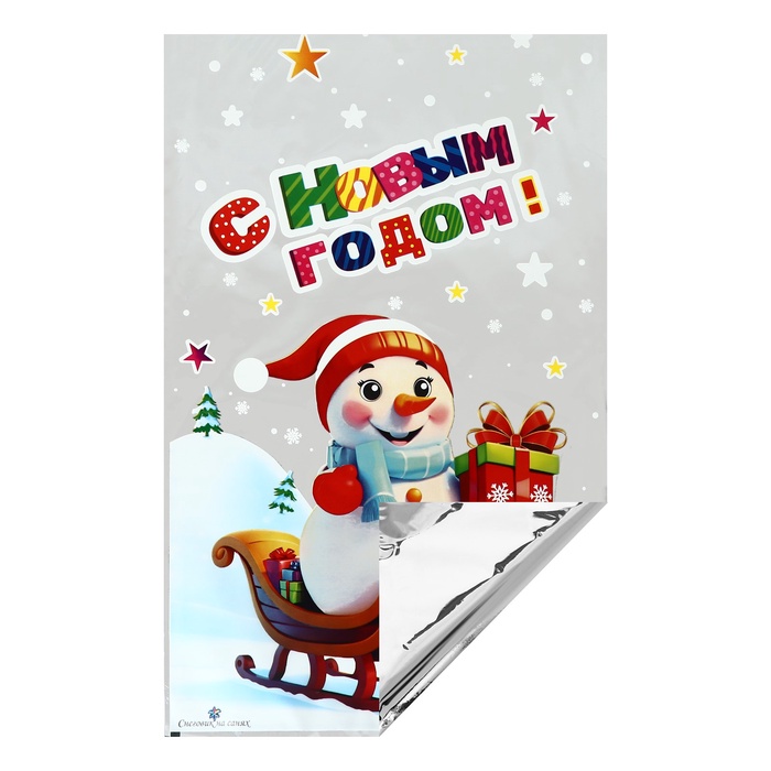 Пакет подарочный «Снеговик на санях» 25×40 см, цветной металлизированный рисунок — Характеристики