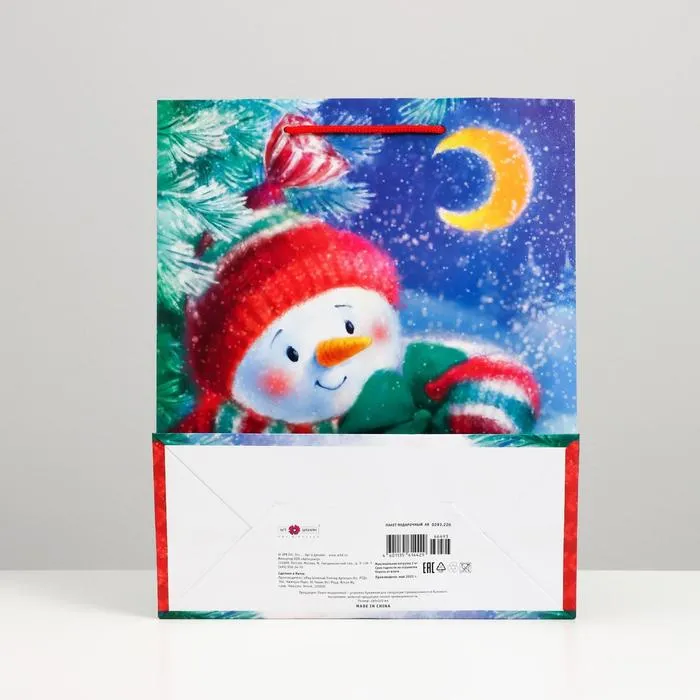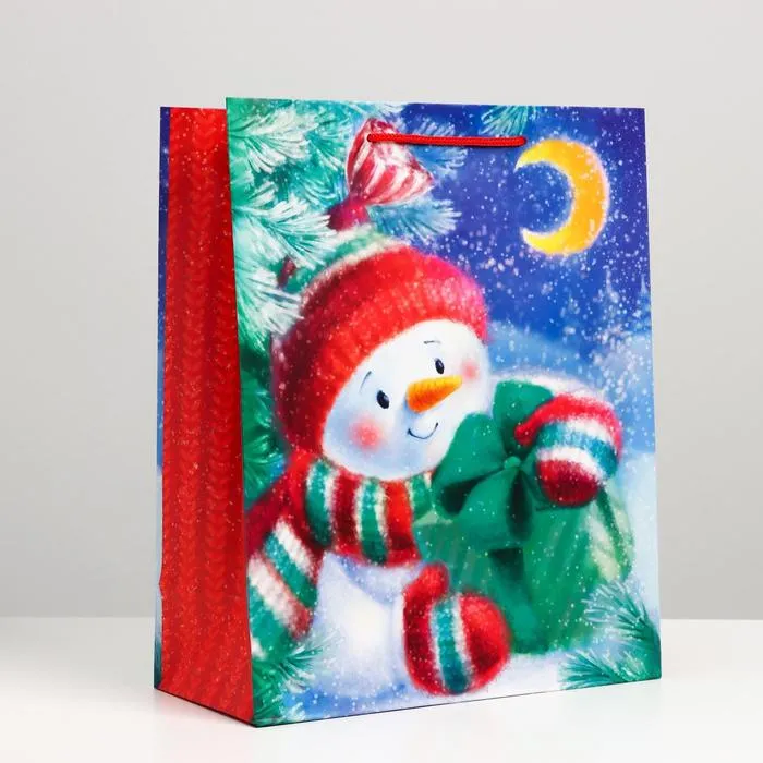 Пакет подарочный «Снеговик с подарком», 26×32×12 см — Характеристики