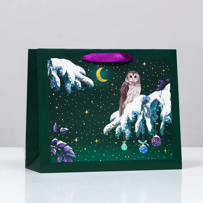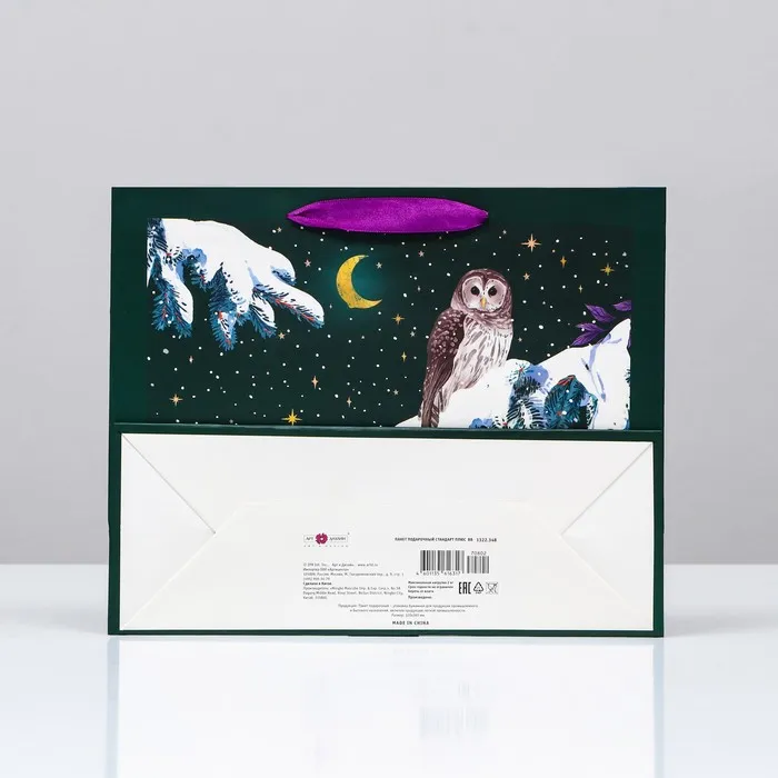 Новогодний подарочный пакет с ярким, красочным рисунком создаст праздничное настроение.