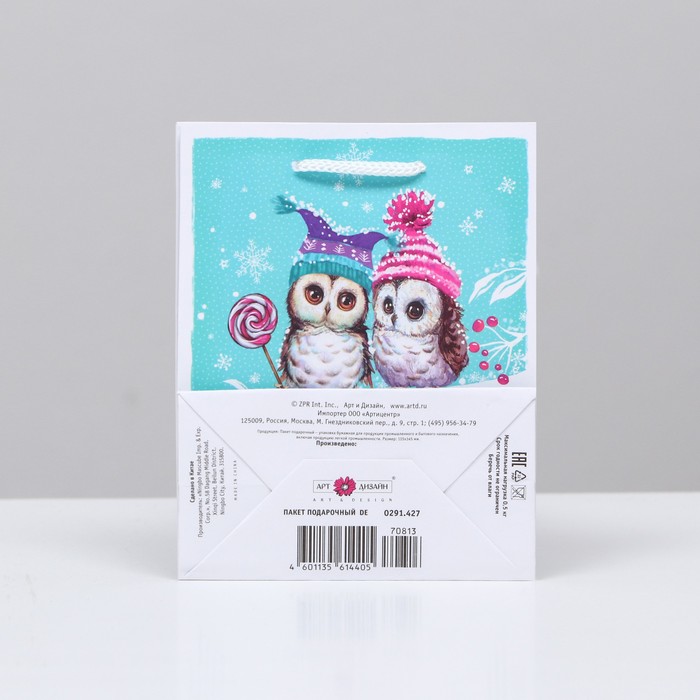 Пакет подарочный "Совы на ветке", 11,5 х 14,5 х 6,5 см