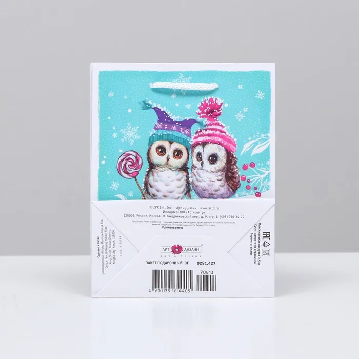 Пакет подарочный "Совы на ветке", 11,5 х 14,5 х 6,5 см — Характеристики