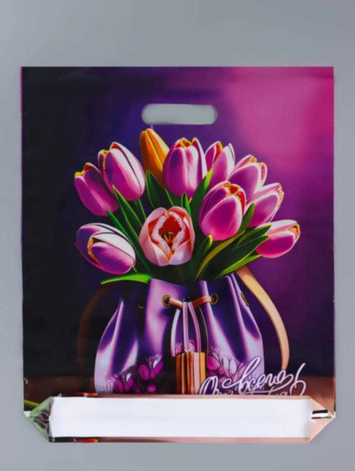 Пакет подарочный «Цветочная Сумочка», полиэтиленовый с вырубной ручкой 38×45 см, 60 мкм — Характеристики