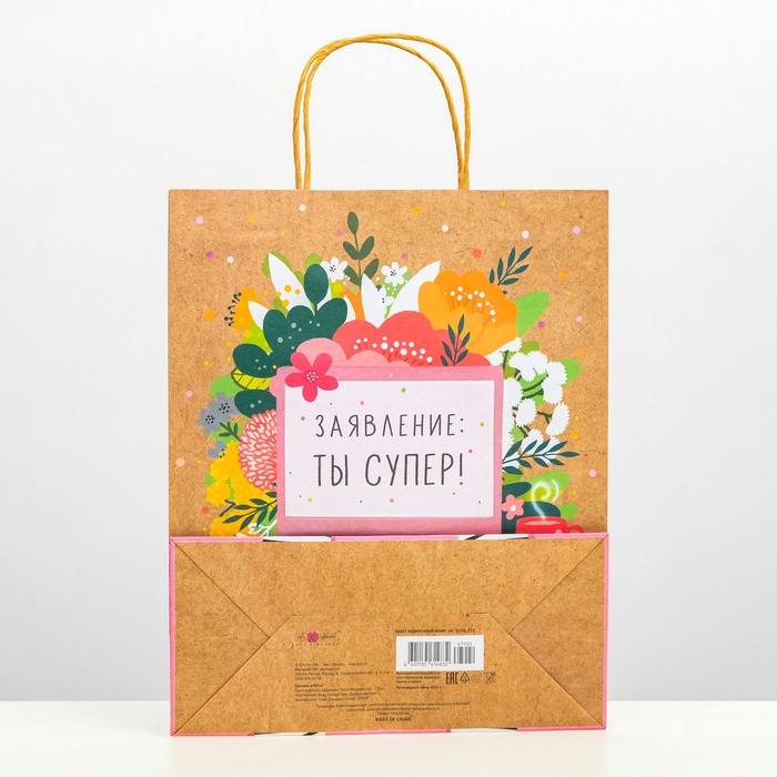 Пакет подарочный "Ты супер", 26 х 32 х 12 см — Характеристики