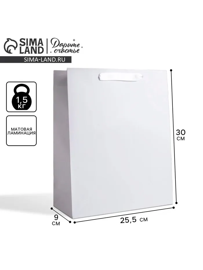 Пакет подарочный, упаковка, «Белый», M 25.5 х 30 х 9 см — Характеристики