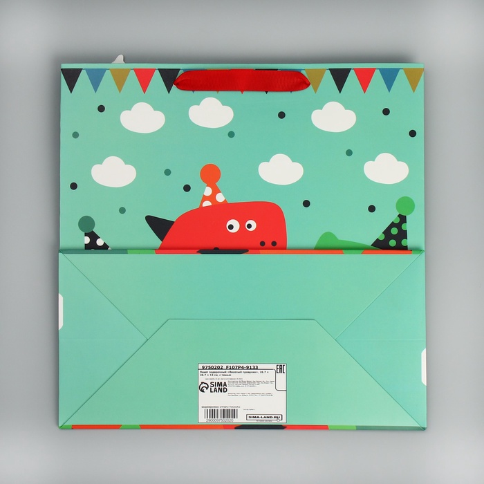 Пакет подарочный, упаковка, «Динозавр: Весёлый праздник», 26.5 х 26.5 х 13 см, — Характеристики