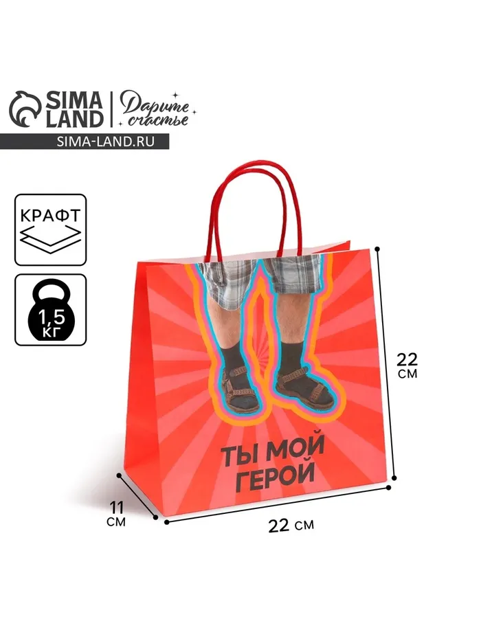 Пакет подарочный, упаковка, «Герой», 22 х 22 х 11 см — Характеристики