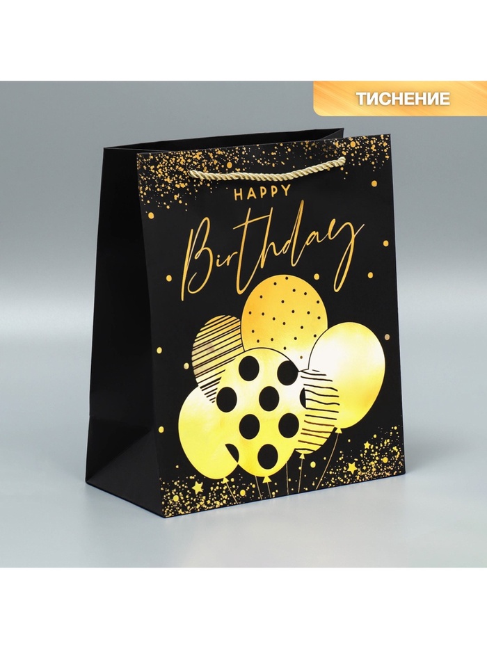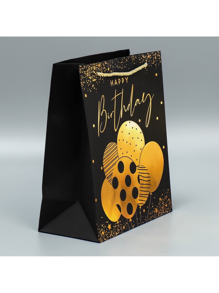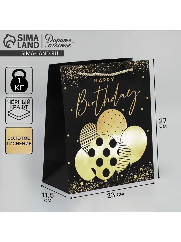 Пакет подарочный, упаковка, «Happy Birthday» чёрный крафт, 23 х 27 х 11.5 см — Характеристики
