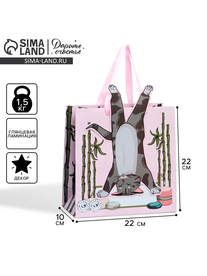 Пакет подарочный, упаковка, «Йога», 22 х 22 х 10 см — Характеристики
