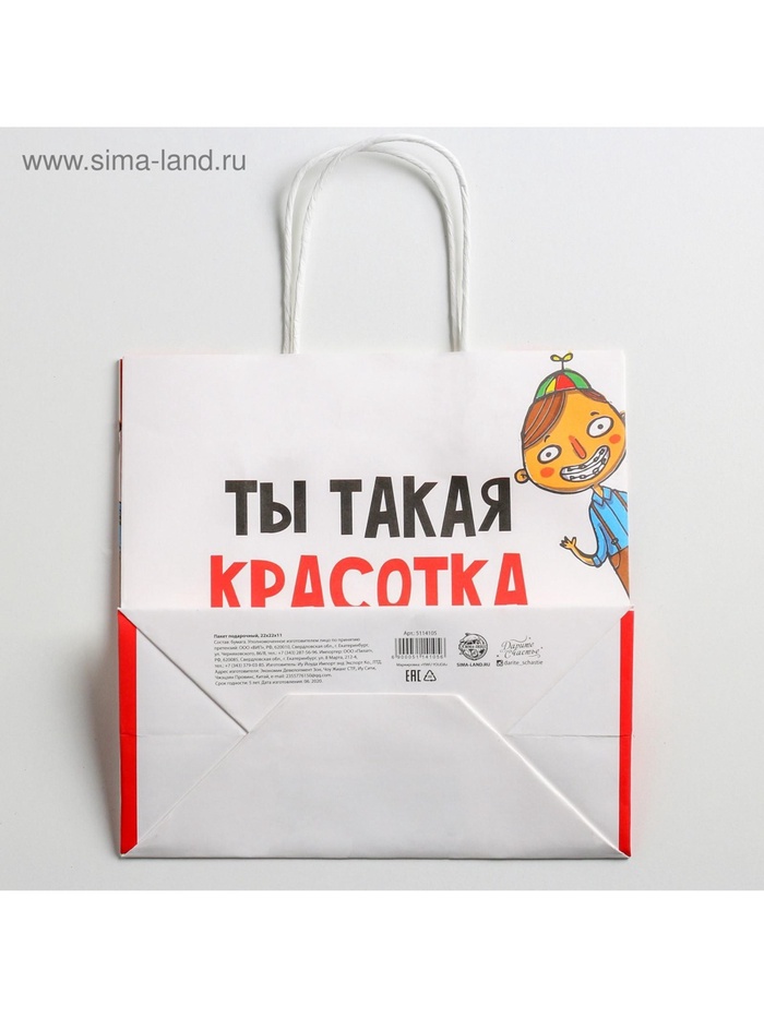 Пакет подарочный, упаковка, «Красотка», 22 х 22 х 11 см — Характеристики