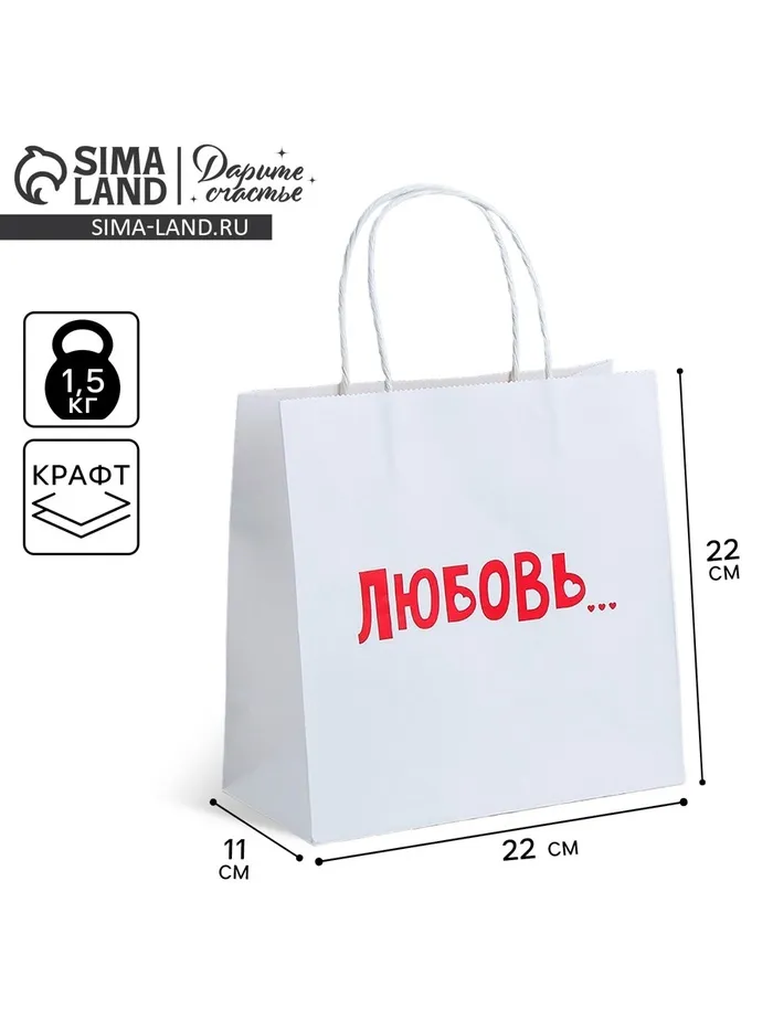 Пакет подарочный, упаковка, «Любовь», 22 х 22 х 11 см — Характеристики