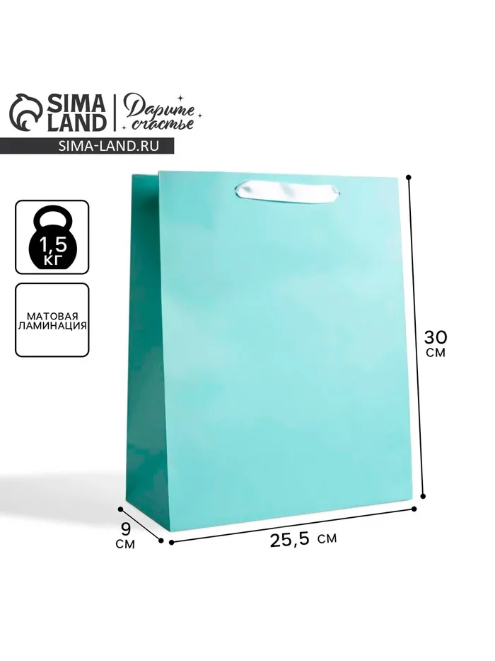 Пакет подарочный, упаковка «Мятный», M 25.5×30×9 см — Характеристики