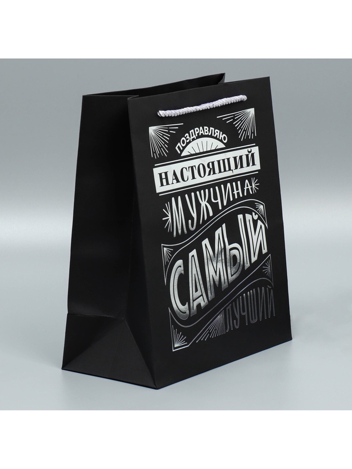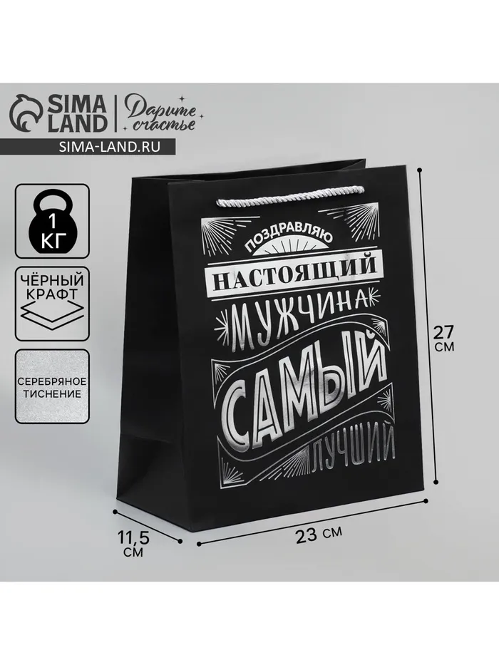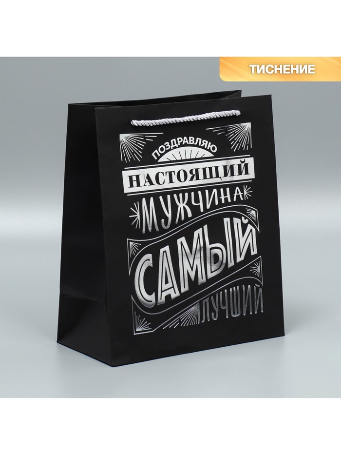 Пакет подарочный, упаковка, «Настоящий мужчина», чёрный крафт, 23 х 27 х 11.5 см — Характеристики
