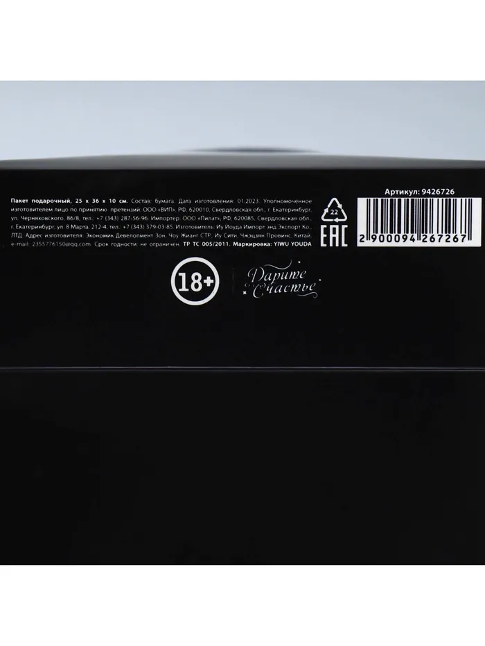 Пакет подарочный, упаковка, «Офигенный подарок», 25 х 36 х 10 см — Характеристики