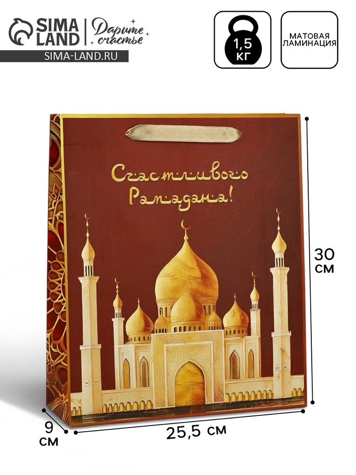 Пакет подарочный, упаковка «Рамадан», M 25.5×30×9 см — Характеристики