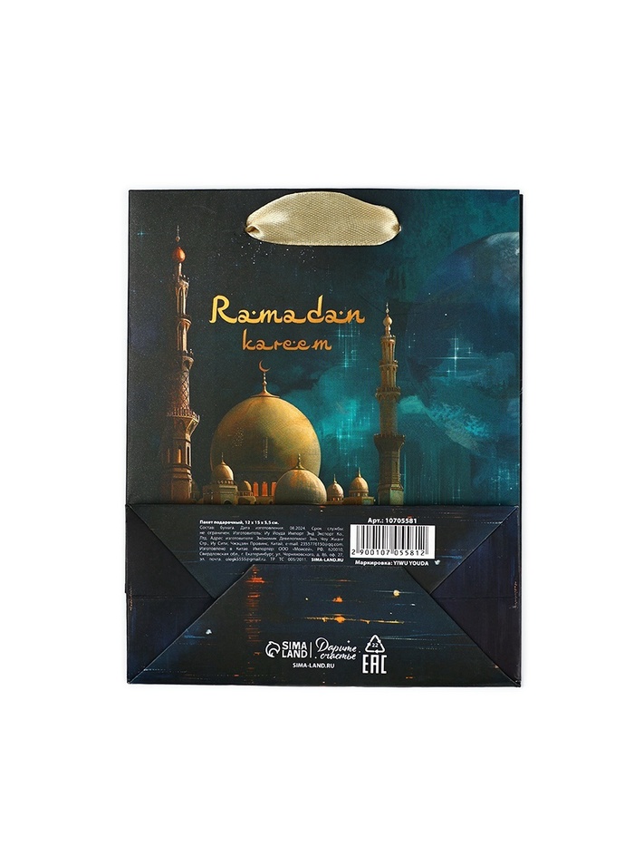 Пакет подарочный, упаковка «Рамадан», S 12 х 15 х 5.5 см — Характеристики