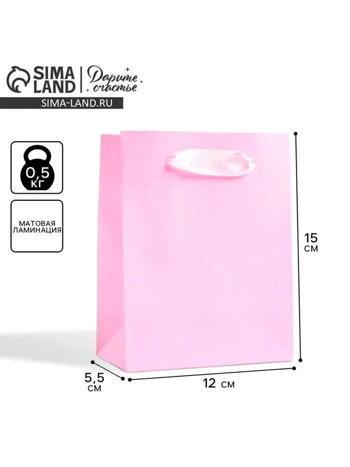 Пакет подарочный, упаковка, «Розовый», 12 х 15 х 5.5 — Характеристики