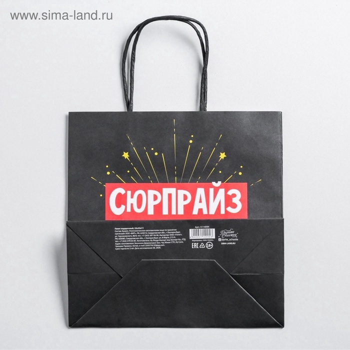 Пакет подарочный, упаковка, «Сюрпрайз», 22×22×11 см — Характеристики