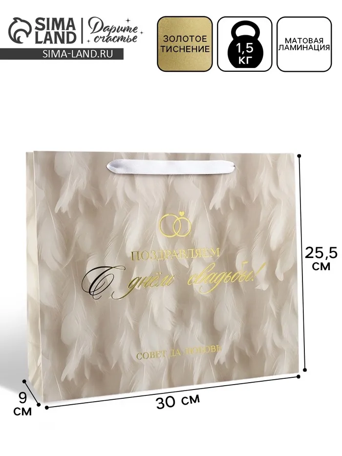 Пакет подарочный, упаковка «Свадьба», тиснение, М 25.5 х 30 х 9 см — Характеристики