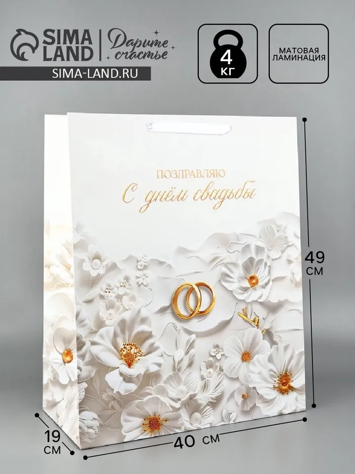 Пакет подарочный, упаковка «Свадьба», XL 40 х 49 х 19 см — Характеристики