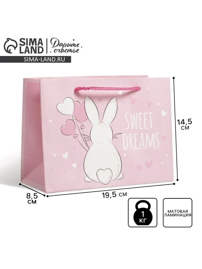 Пакет подарочный, упаковка, Sweet dreams, 14.5 х 19.5 х 8.5 см — Характеристики
