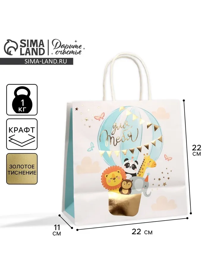 Пакет подарочный, упаковка, «Тебе солнышко», 22 х 22 х 11 см — Характеристики