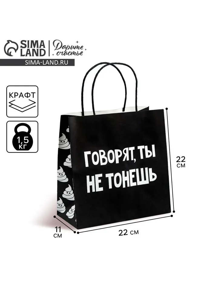 Пакет подарочный, упаковка, «Ты не тонешь», 22 х 22 х 11 см — Характеристики