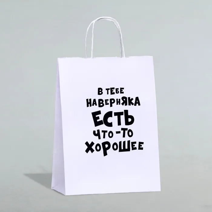 Подарок с долей здорового скепсиса! Крафт-пакет с надписью «В тебе наверняка есть что-то хорошее» — оригинальная упаковка для тех, кто ценит иронию в деталях. Двусторонний принт с ноткой сарказма превращает обычную упаковку в самостоятельное высказывание.