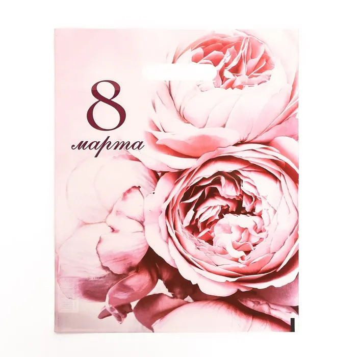 Пакет подарочный «В твой праздник 8 Марта», полиэтиленовый с вырубной ручкой, 30×40 см, 50 мкм — Характеристики