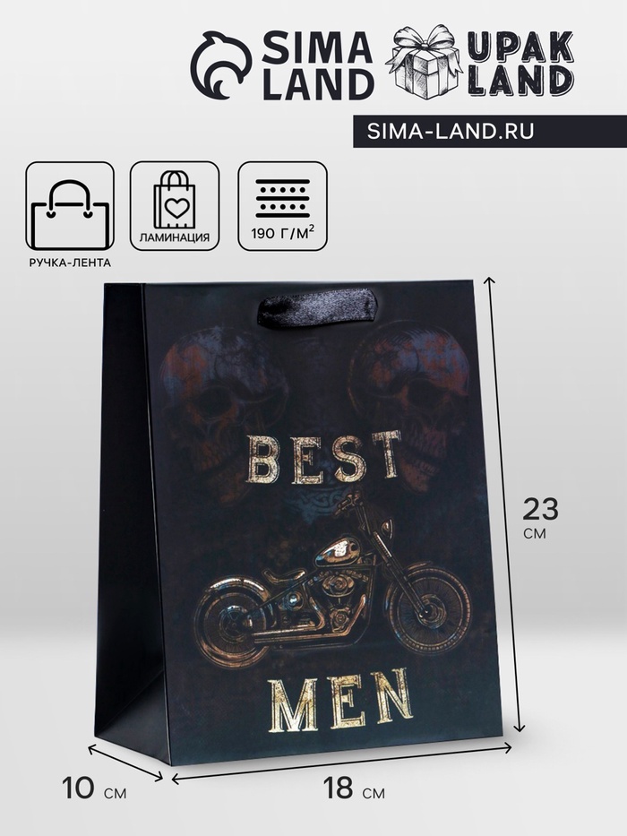 Этот стильный и современный подарочный пакет станет отличным выбором для поздравления мужчины на 23 февраля! Вертикальный формат пакета позволяет удобно разместить любые виды подарков, будь то часы, аксессуары, книга или что-то другое.