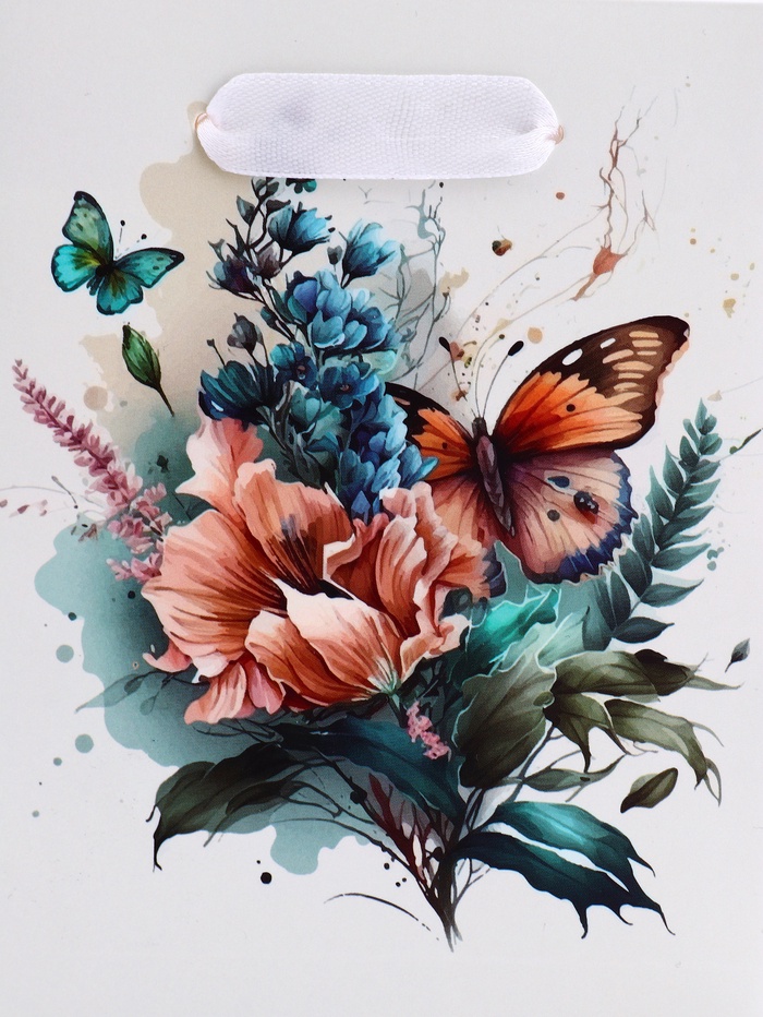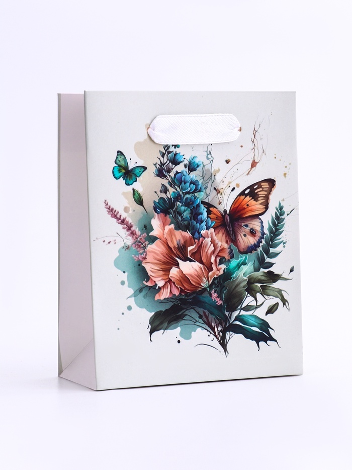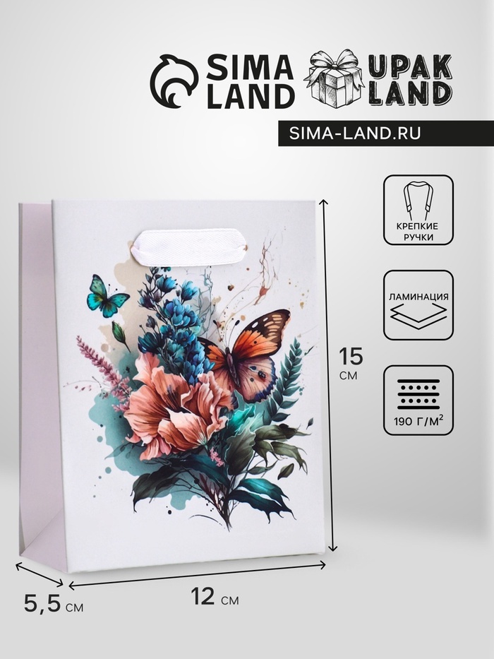 Пакет подарочный вертикальный «Большие бабочки», S 12×15×5.5 см — Характеристики