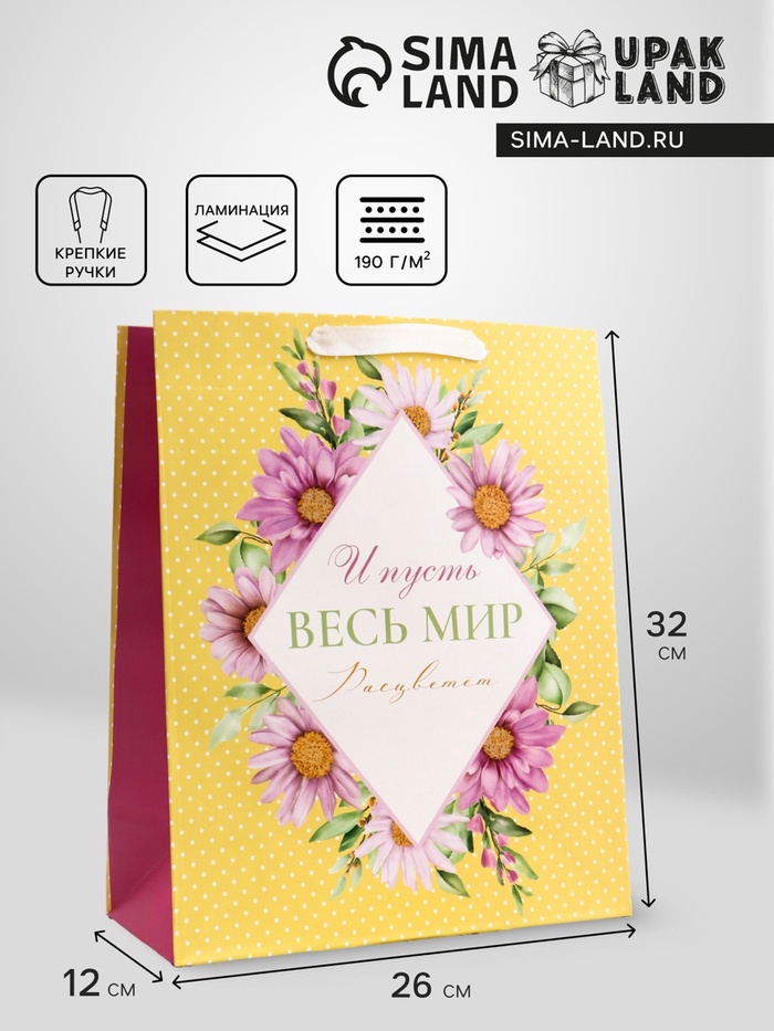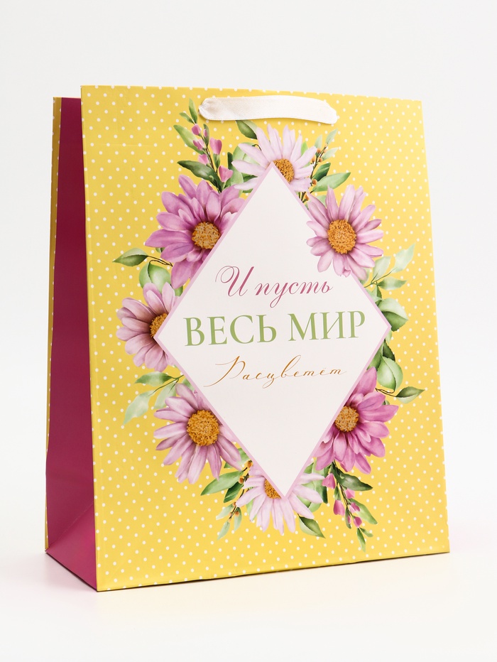 Пакет подарочный вертикальный «И пусть весь мир расцветет», 26×32×12 см — Характеристики
