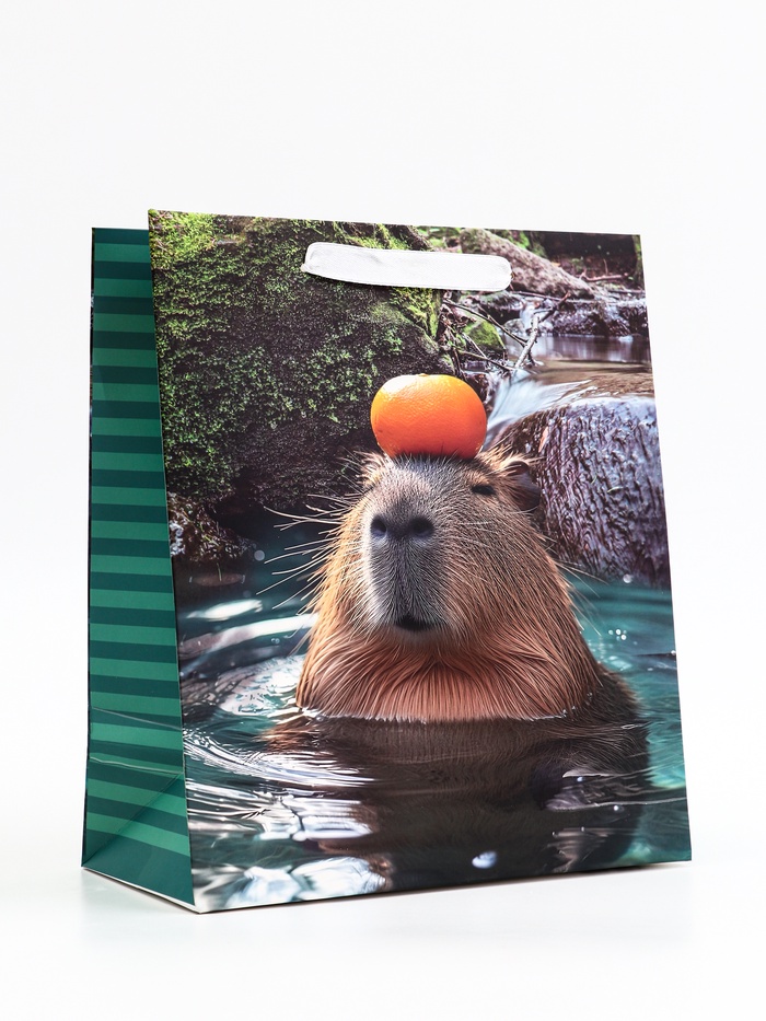 Пакет подарочный вертикальный «Капибара», 23×27×11.5 см