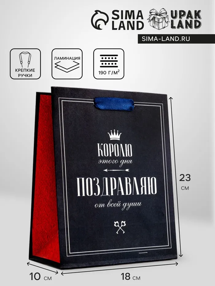 Пакет подарочный вертикальный «Королю этого дня», 18×23×10 см — Характеристики