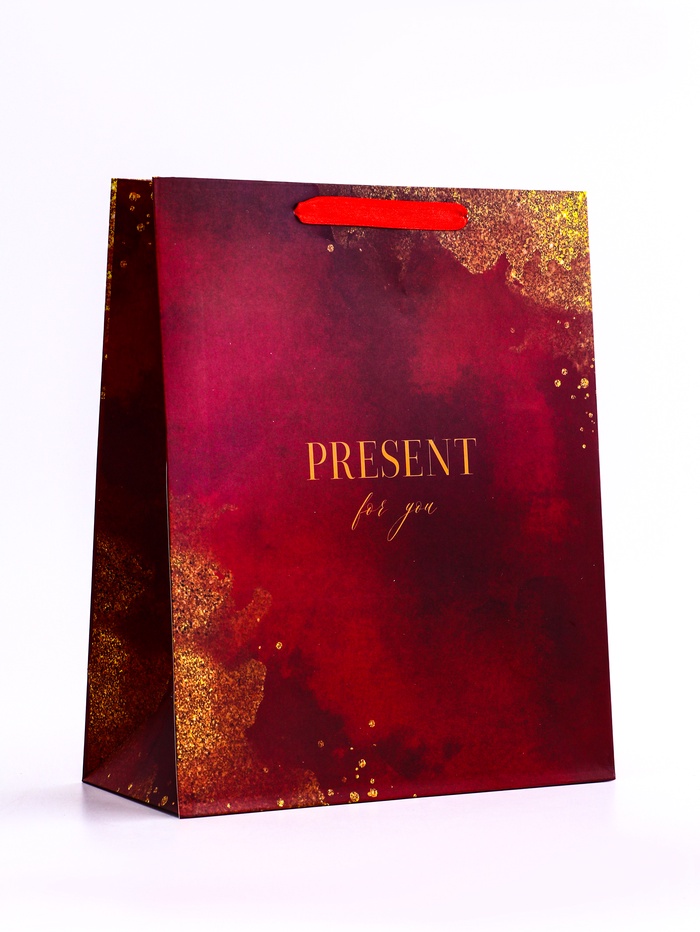 Пакет подарочный вертикальный «Красное золото», M 26×32×12 см
