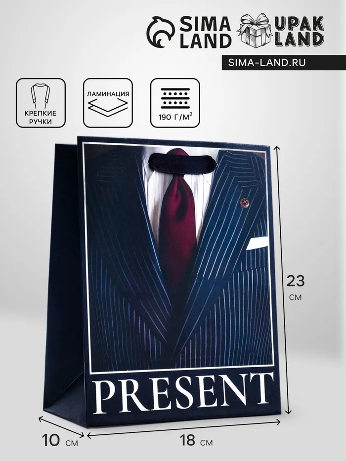 Пакет подарочный вертикальный «Мужской», 18×23×10 см — Характеристики