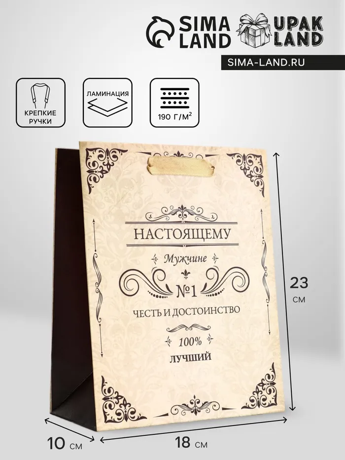 Пакет подарочный вертикальный «Настоящему мужчине», 18×23×10 см — Характеристики