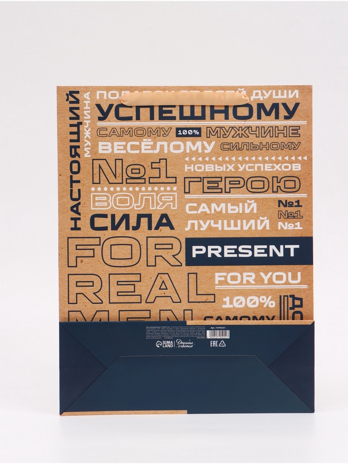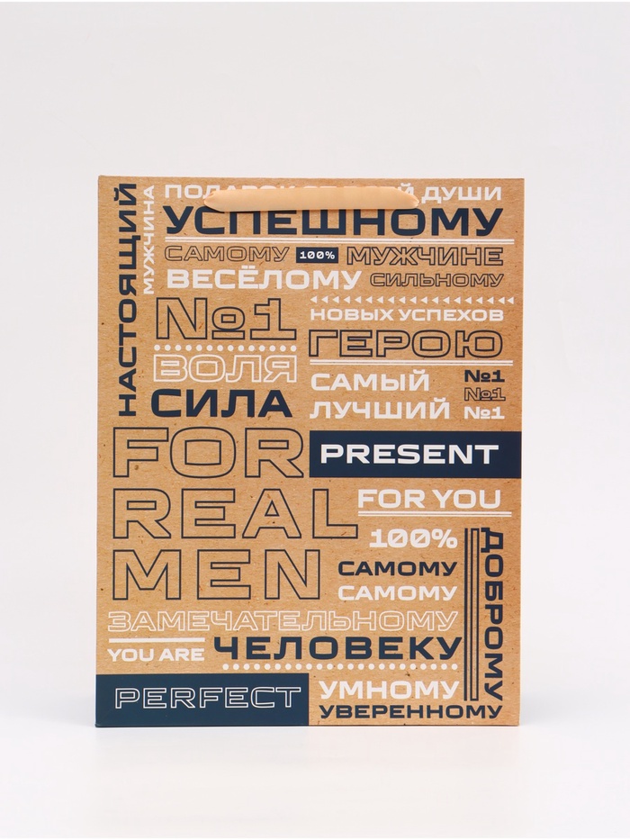 Пакет подарочный вертикальный «Настоящий мужчина», 31×40×14 см — Характеристики