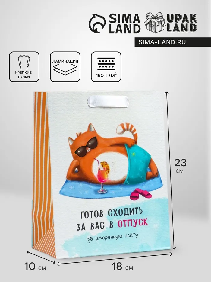 Пакет подарочный вертикальный «Отпуск», MS 18×23×10 см — Характеристики