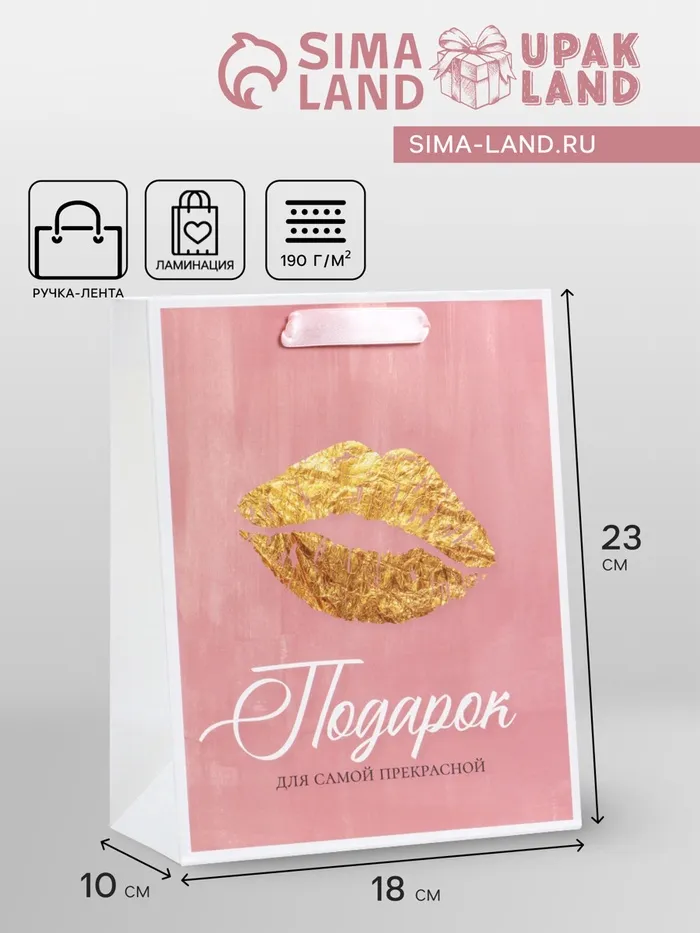 Пакет подарочный вертикальный «Подарок для самой прекрасной», MS 18×23×10 см — Характеристики