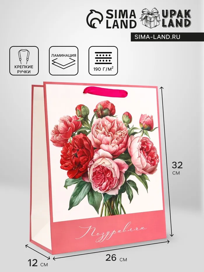 Пакет подарочный вертикальный «Поздравляю», 26×32×12 см — Характеристики
