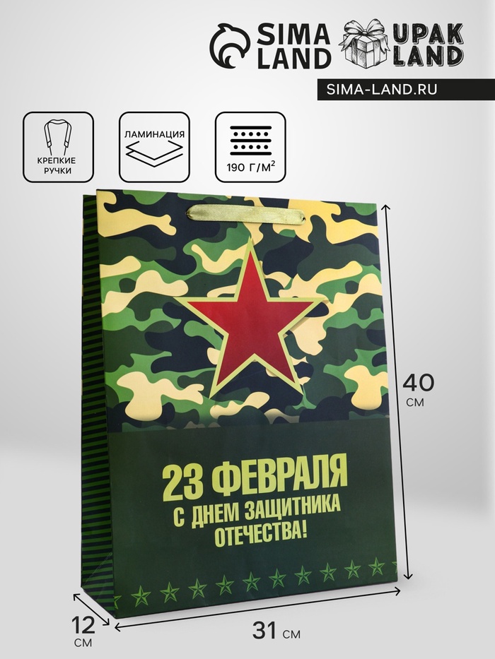 Пакет подарочный вертикальный «С Днём защитника Отечества! », L 31×40×12 см — Характеристики