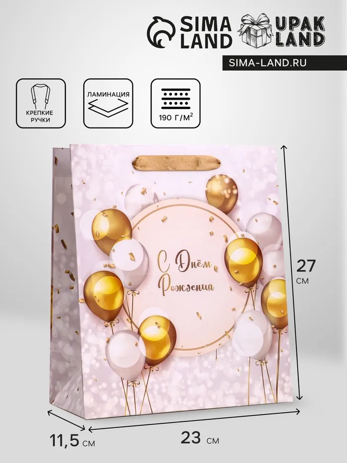 Этот пакет представляет собой идеальную комбинацию стиля, качества и функциональности. Ламинирование придает поверхности гладкость и блеск, благодаря чему упаковка выглядит особенно эффектно и презентабельно. Плотность 190 г/м² обеспечивает исключительную прочность и надежность, что позволяет использовать пакет для самых разнообразных подарков, включая тяжелые предметы.