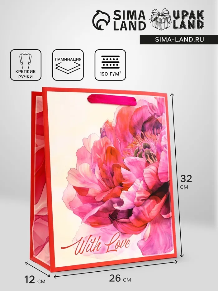 Этот пакет представляет собой идеальную комбинацию стиля, качества и функциональности. Ламинирование придает поверхности гладкость и блеск, благодаря чему упаковка выглядит особенно эффектно и презентабельно. Плотность 190 г/м² обеспечивает исключительную прочность и надежность, что позволяет использовать пакет для самых разнообразных подарков, включая тяжелые предметы.