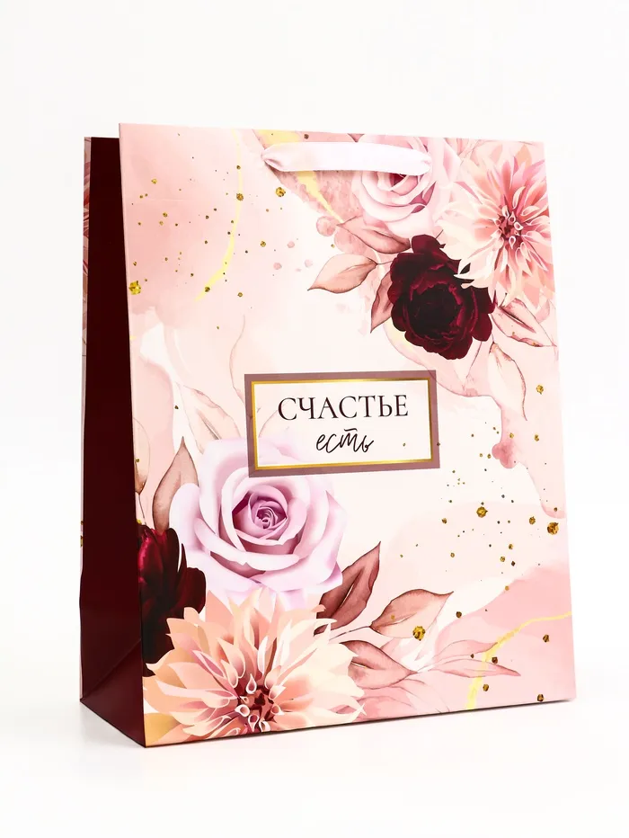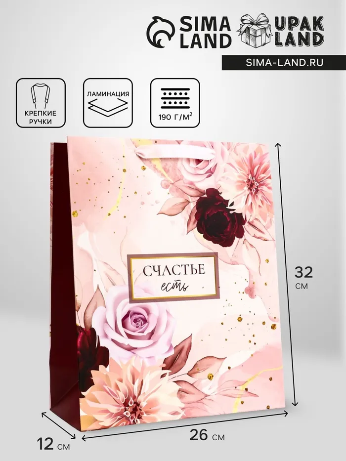 Пакет подарочный вертикальный «Счастье есть», 26×32×12 см — Характеристики
