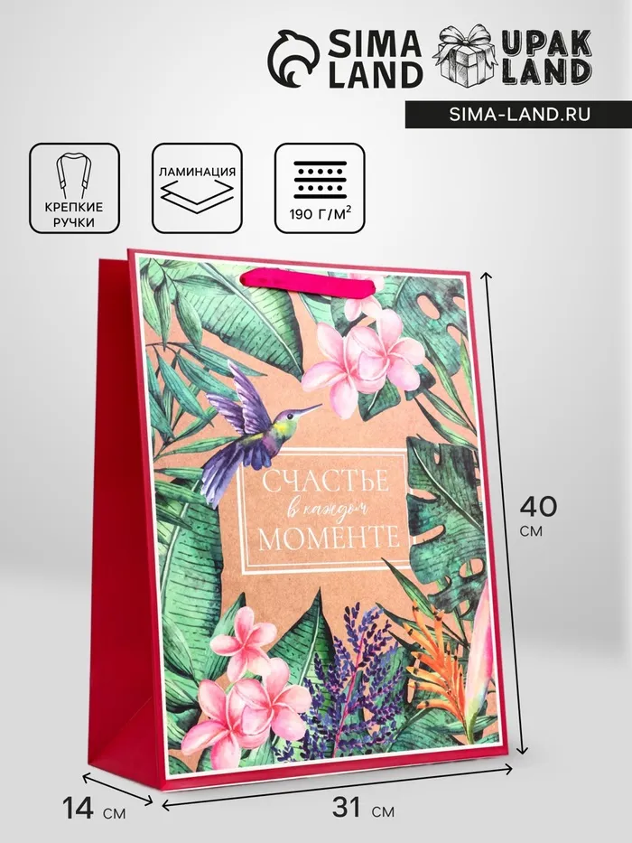 Пакет подарочный вертикальный «Счастья в каждом моменте», 31×40×14 см — Характеристики